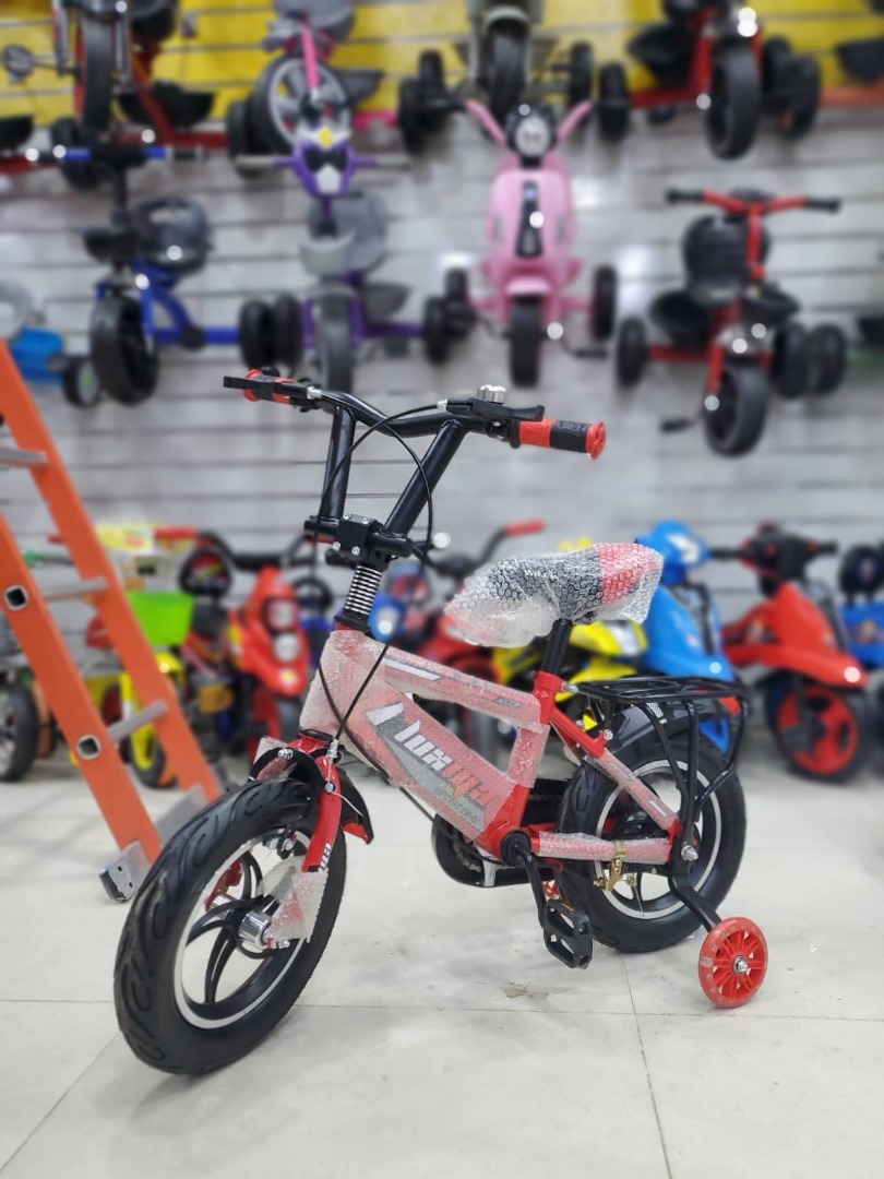 دراجة آمنة وعملية للأطفال بمقاس 12 إنش، تساعدهم على تعلم ركوب الدراجة بثقة وأمان. تأتي بتصميم رياضي أنيق باللون الأحمر مع إطارات عريضة لمزيد من الثبات، بالإضافة إلى عجلات جانبية للتوازن يمكن إزالتها عند تقدم الطفل في القيادة.