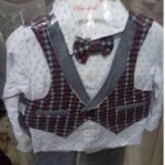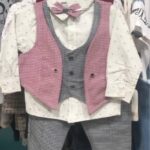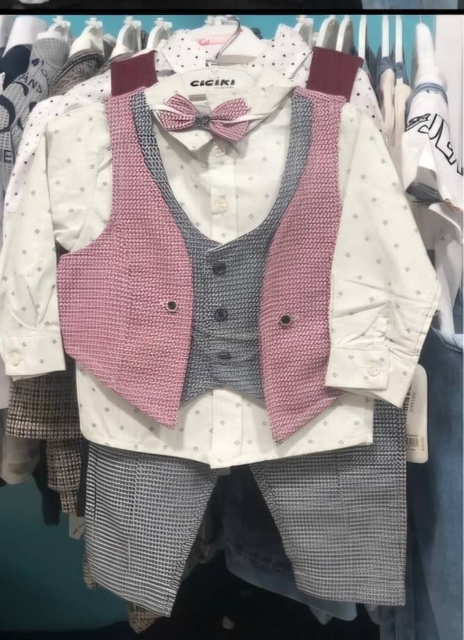 لطلة أنيقة ومريحة في آن واحد، اختر هذا الطقم الرسمي الولادي المفعم بالذوق الرفيع. يتألف الطقم من قميص بأكمام طويلة ، وفيست بتصميم فريد يجمع بين اللون الرمادي السادة ونقشة الكاروهات باللونين الأزرق والرمادي الداكن. يكمل الطقم بنطلون رمادي فاتح مريح وربطة عنق فراشة متناسقة. الخامات المختارة بعناية تضمن الراحة المطلقة والمظهر الراقي لطفلك، مما يجعله مثالياً للاحتفالات، الزيارات العائلية، أو أي مناسبة تتطلب إطلالة مميزة