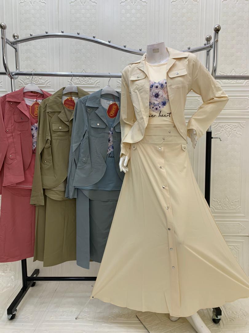 كتشفي الأناقة العملية مع هذا الطقم الراقي الذي يجمع بين البساطة والرقي. يتألف من جاكيت بقصة عملية مع جيوب أمامية وأزرار أنيقة، وتنورة طويلة بقصة مستقيمة مزينة بأزرار أمامية تضفي عليها لمسة عصرية. اللون البيج السادة يجعله سهل التنسيق مع مختلف الإكسسوارات، والخامة ناعمة ومريحة تمنحك شعورًا بالراحة والثقة في كل مرة ترتدينه. مثالي لإطلالات العمل أو للخروجات اليومية التي تتطلب لمسة من الرقي