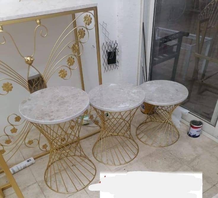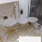 طقم طاولات خدمه ووسط بتصميم فاخر من الرخام والحديد الذهبي