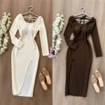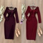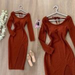 فستان طويل بأكمام طويلة وفتحة جانبية