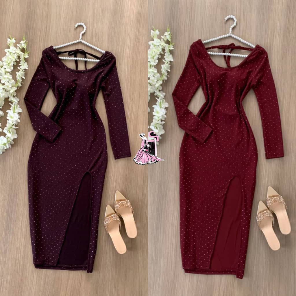 فستان سهرة طويل مصمّم بقماش فاخر وناعم، مزين بنقاط براقة تضيف لمسة من الفخامة. يتميز بقصة ضيقة تبرز جمال القوام، مع فتحة جانبية جذابة تزيد من أنوثة الإطلالة. تصميم الظهر المكشوف مع ربطة أنيقة يجعل هذا الفستان خيارًا مثاليًا للمناسبات الخاصة، السهرات، أو حفلات الخطوبة.