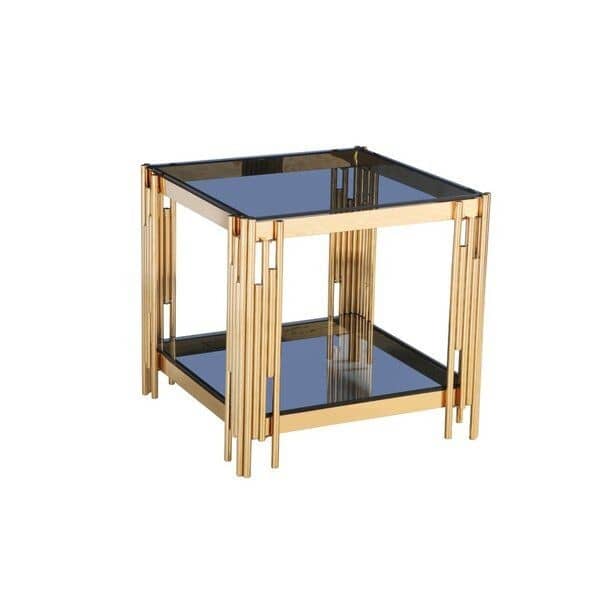 طاولة جانبية مربعة بتصميم ذهبي فاخر وزجاج أسود