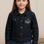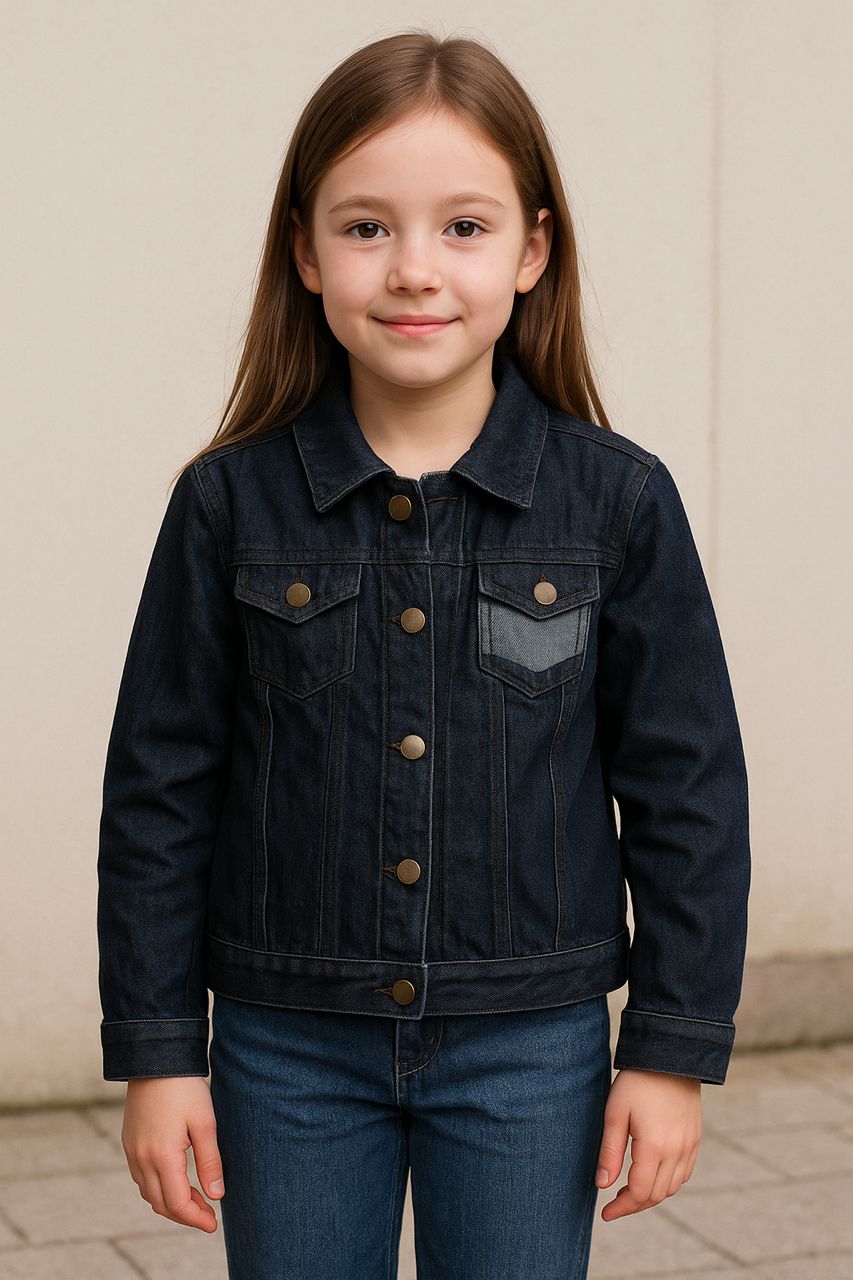 جاكيت أنيق عملي للبنات والأولاد، بلون جينز غامق يناسب جميع الإطلالات اليومية 🎀👦🏻👧🏻