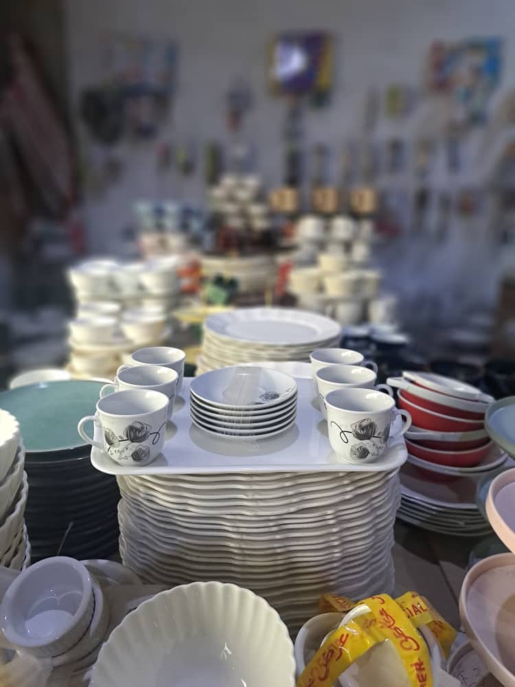 طقم اقلاص مكون من 6 فناجين مع 6 سياسر مع صحن تقديم ميلامين